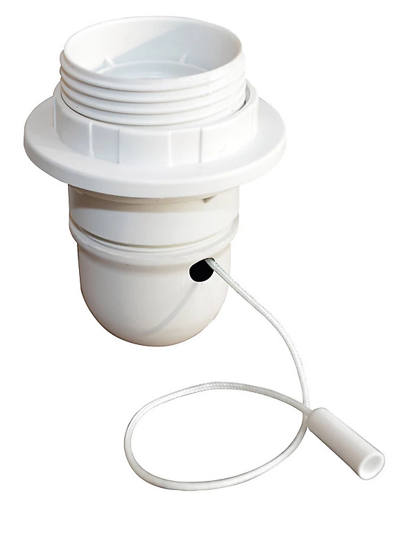 Douille + bague + interrupteur à tirette, blanc.