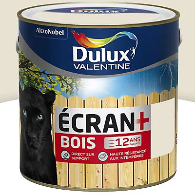 La peinture intérieur extérieure Dulux Valentine Ecran+ blanc crème satin de 2L à destination des supports en bois possède une Formule glycéro satinée spécialement conçue pour durer longtemps, résister aux agressions des intempéries et apporter un beau résultat.