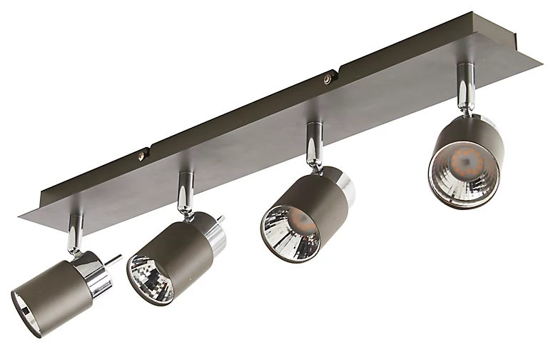 Réglette 4 spots Hades métal gris/chrome LED 4×3,5 W