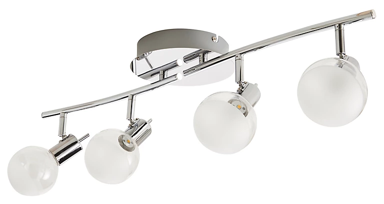 Réglette 4 spots Panacea métal/verre chrome LED 4×5 W